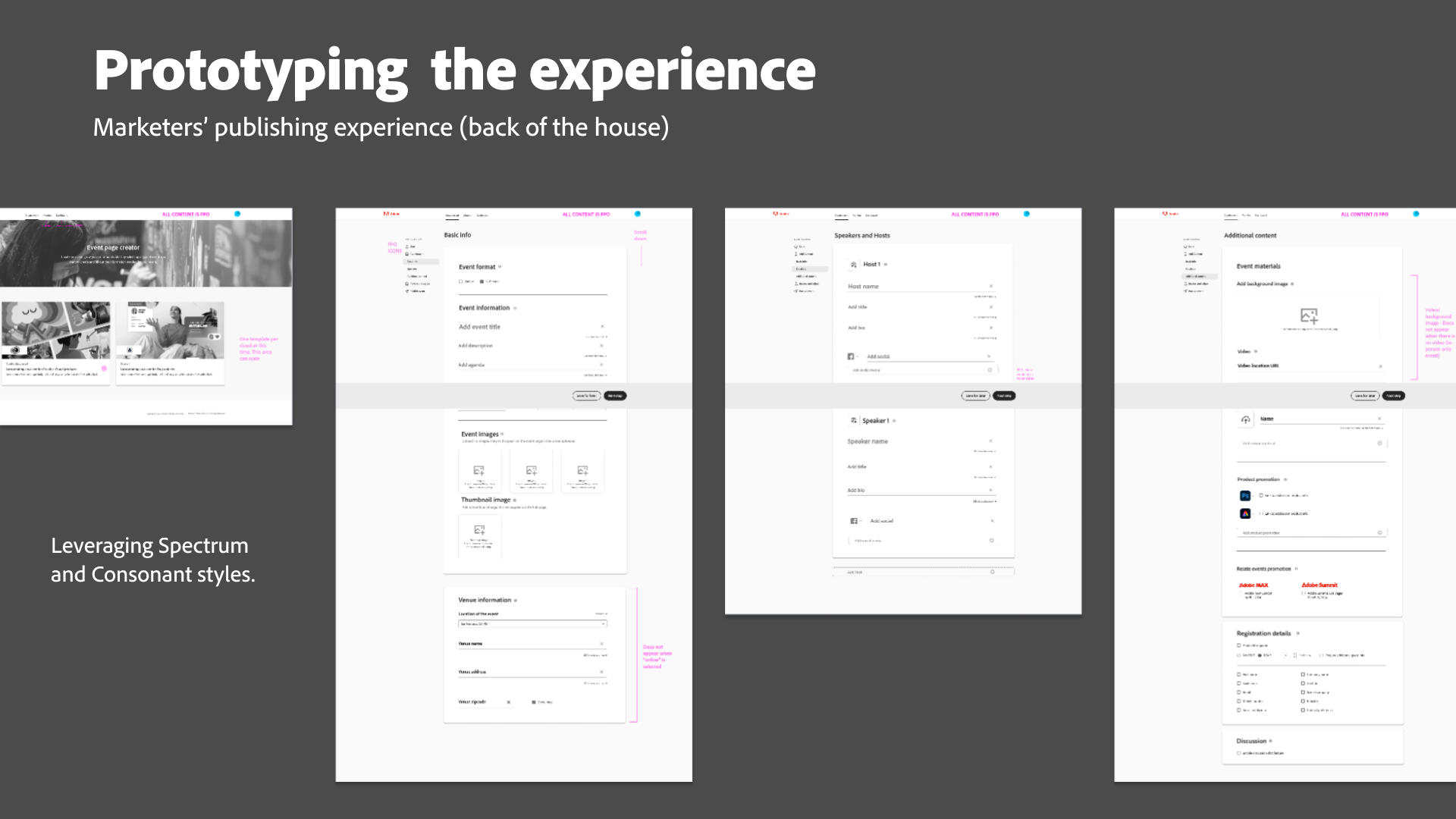 Challenges & Impact: This project required extensive cross-functional coordination across teams with competing priorities, while adapting to a new codebase and technical constraints. To streamline efforts and ensure consistency, I introduced a reusable Events pattern library that supports both current and future use cases. Building on this foundation, we are now shaping the future-state experience with AI- and LLM-powered features to enhance marketer workflows and attendee experiences.