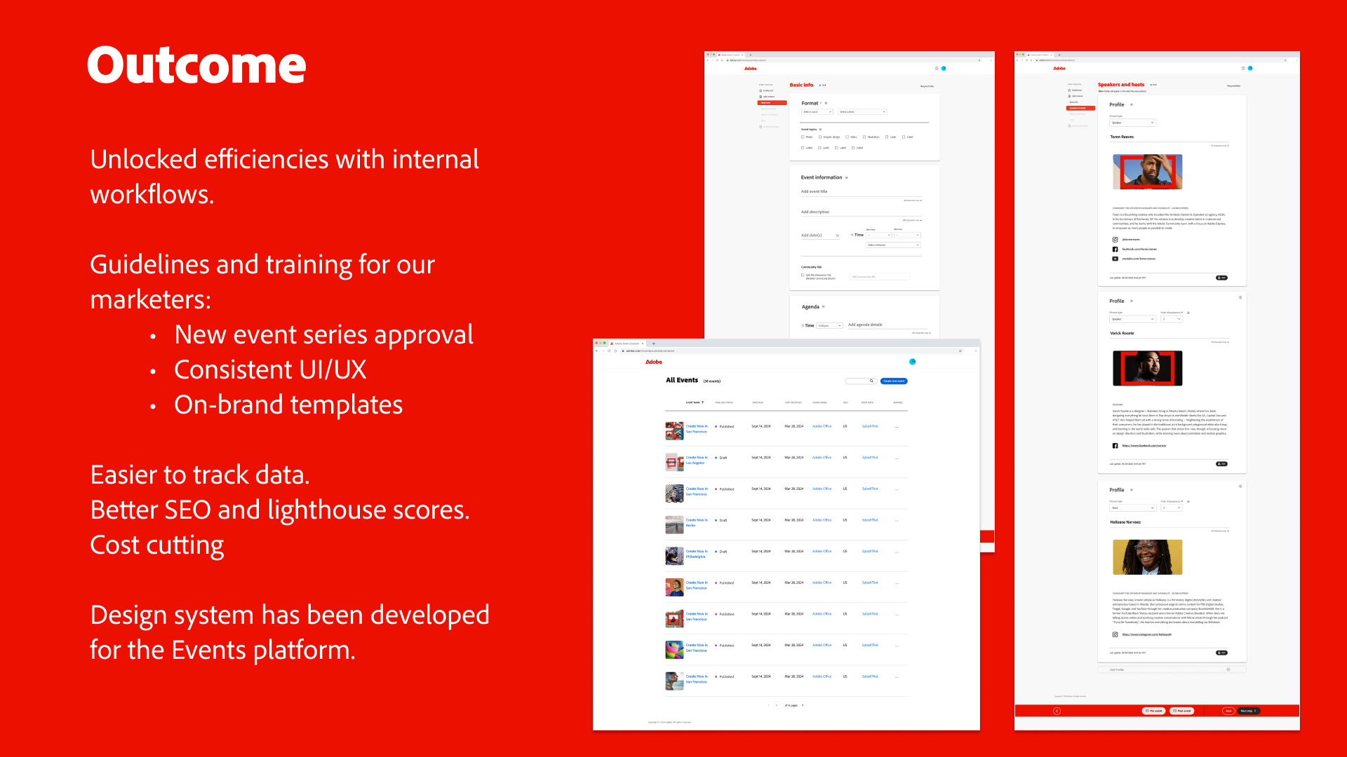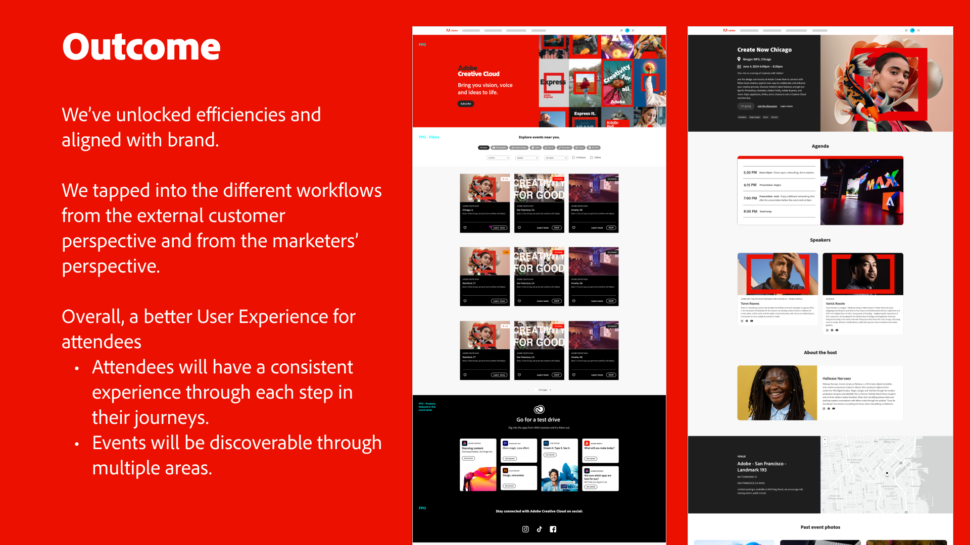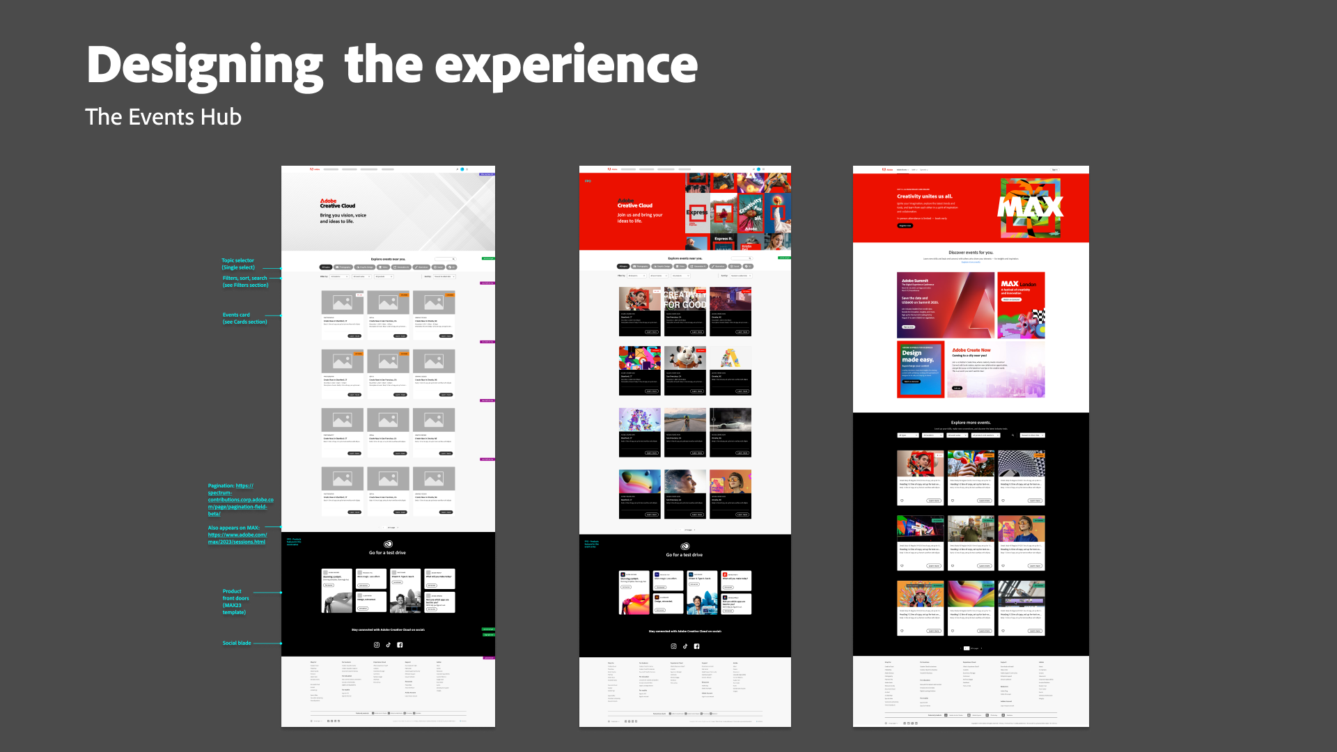 This in-development, consumer-facing events platform is designed to support a wide spectrum of event types—from local in-person meetups and virtual webinars to high-profile programs like Adobe MAX and Summit. It enables marketers to create and manage event pages, track performance, and derive insights, while helping audiences discover, learn, and engage with event content and community. Built for flexibility and scale, the platform aims to modernize Adobe’s events experience and support future opportunities.